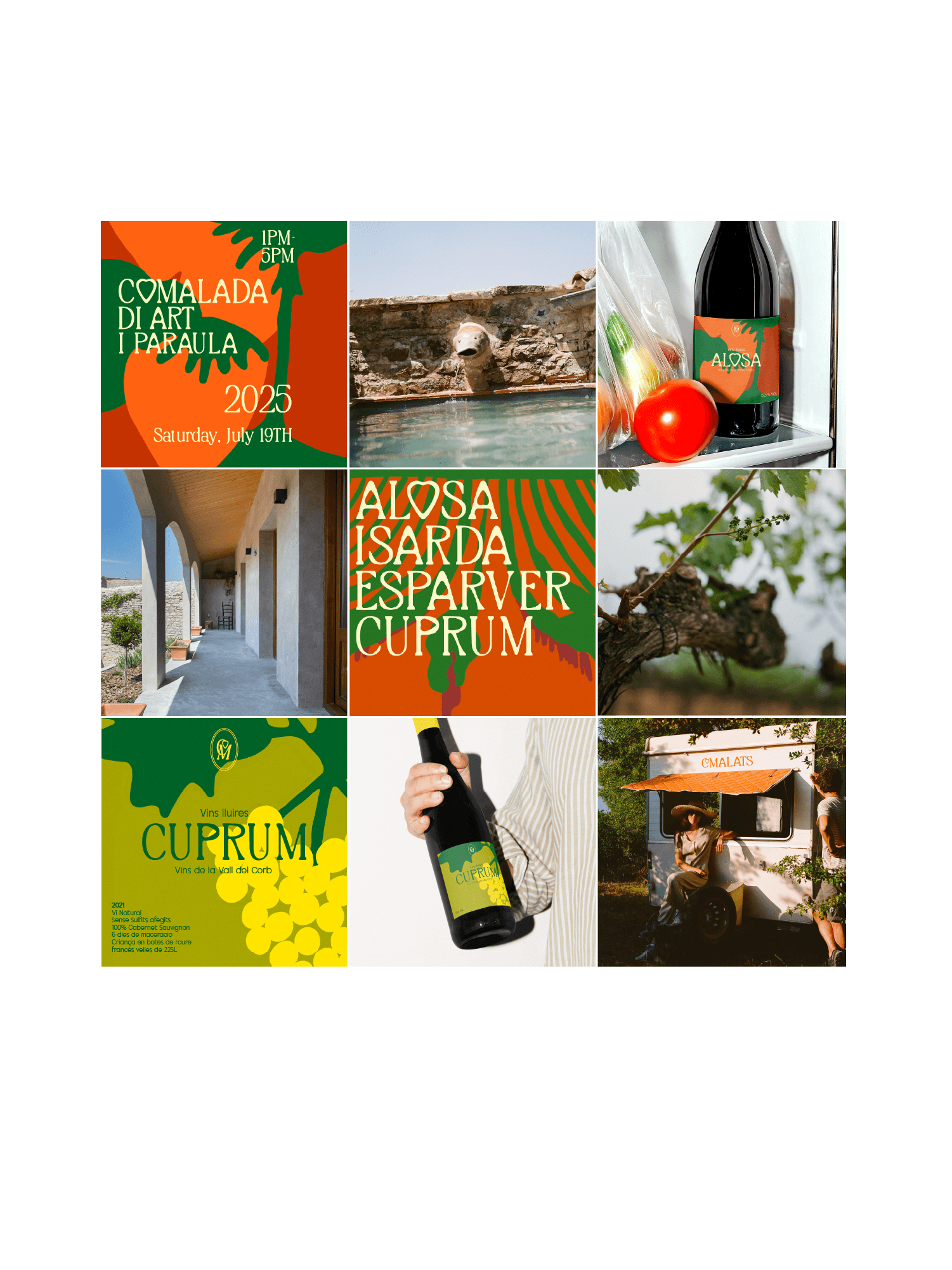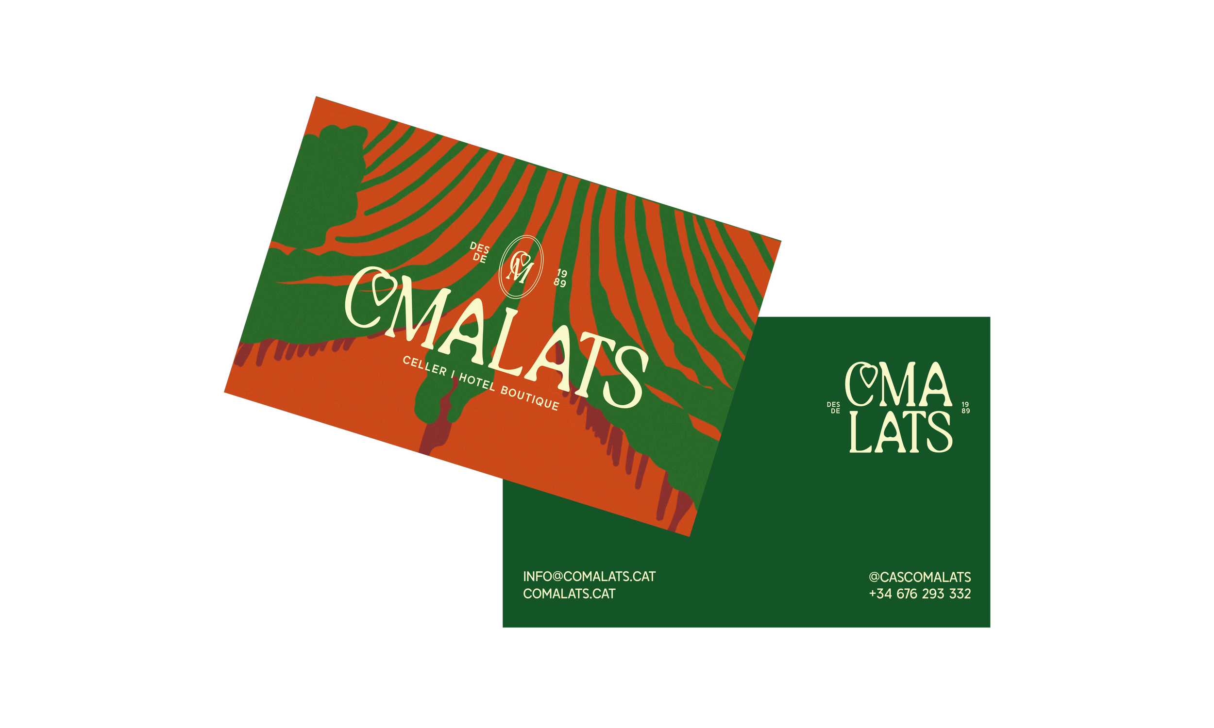 A full rebranding of Comalats, a Catalan family winery that has been making natural wine in its own cellar for generations. Deeply connected to the land and guided by family tradition, Comalats celebrates the craft of honest, hands-on winemaking.