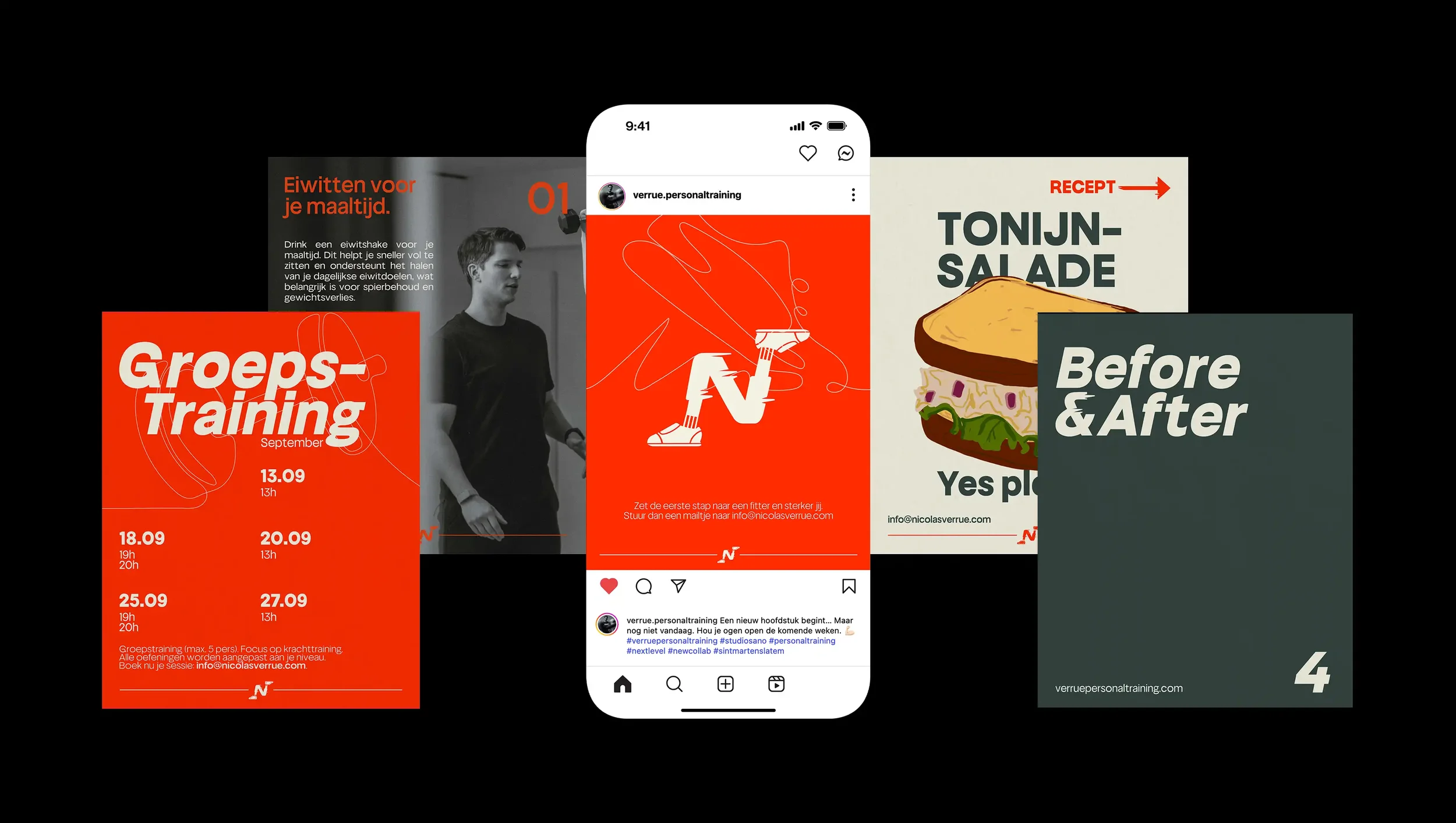The system, designed mainly for social media, features bold, playful sport elements that make the graphics versatile for posts, merchandise, and posters. Combined with line-art icons (heart, dumbbell, apple, and shoe), the visuals bring the campaign to life.