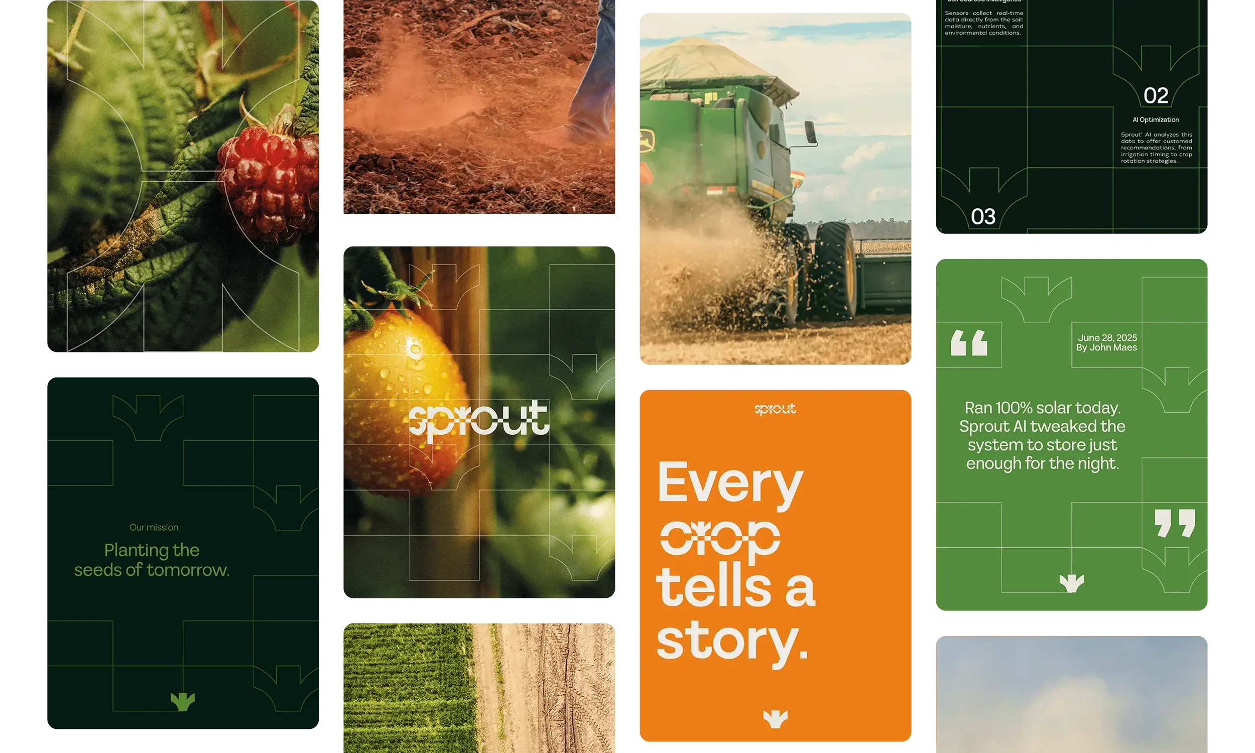 Sprout is an AI-powered platform on a mission: to help farmers embrace regenerative practices and achieve net-zero solutions without compromising the land. The goal of this project was to bring that mission to life visually: when farming meets tech.