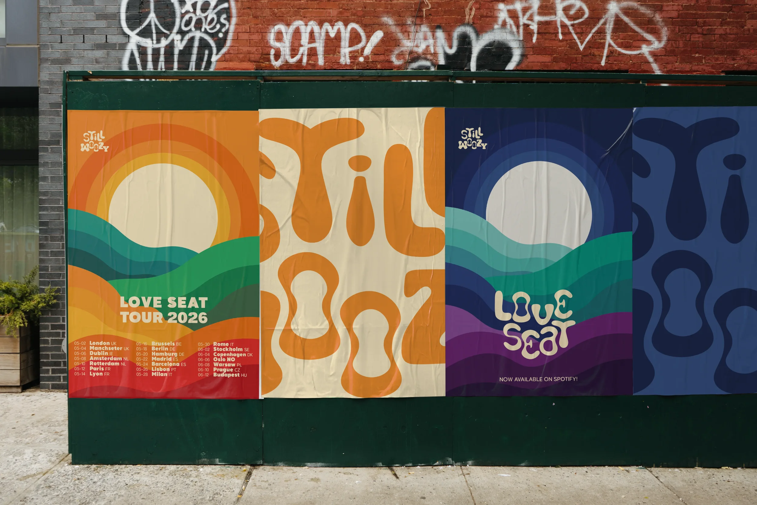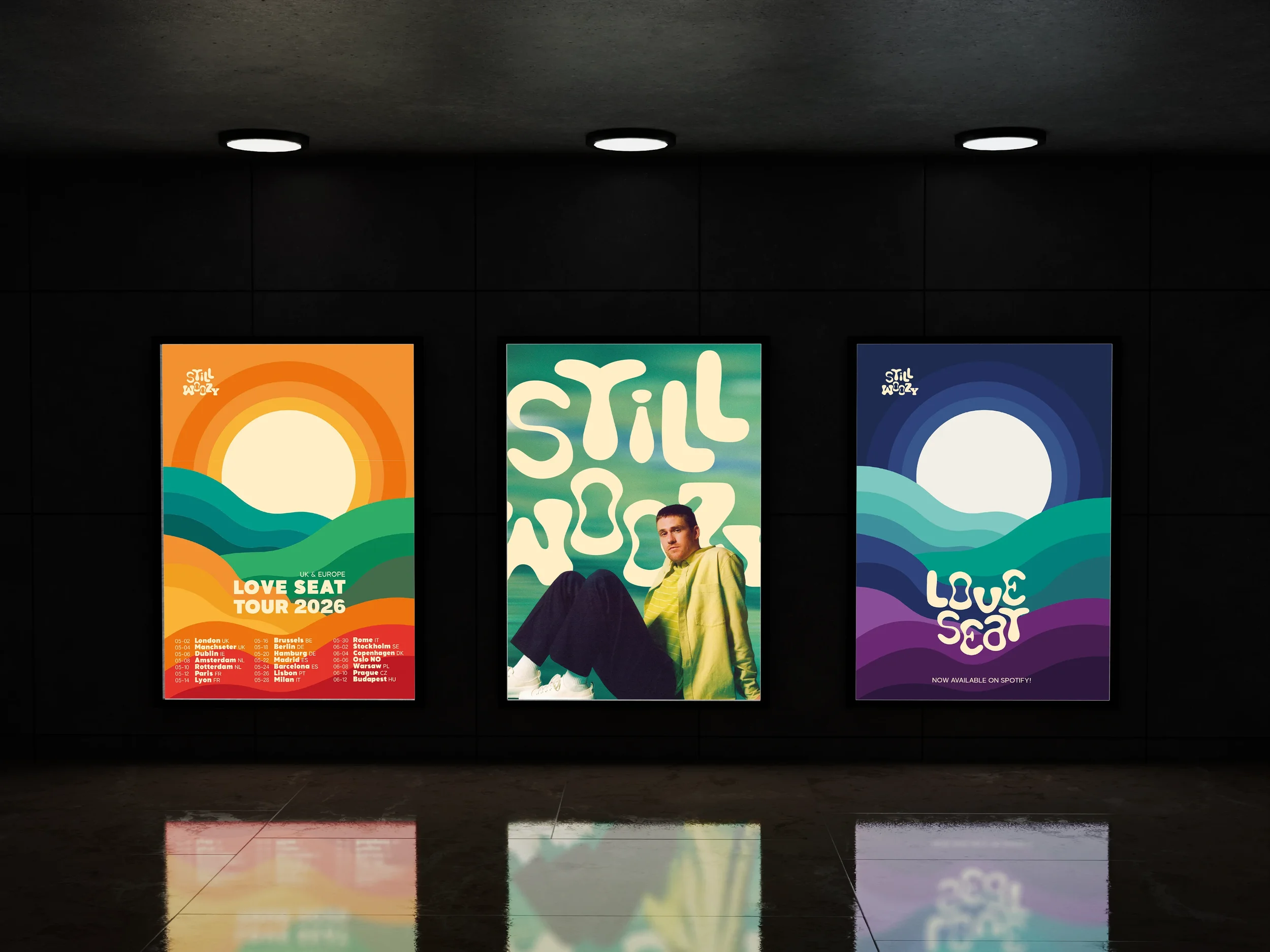 A visual identity inspired by Still Woozy’s Love Seat album. The design captures the contrast between day and night through an abstract sea landscape.